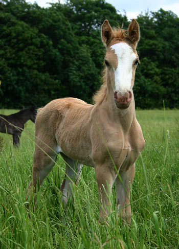 Unsere Nebo Celebretion Tochter hat heute morgen ein wunderschönes sehr großrahmiges und knochenstarkes Stutfohlen mit einem traumhaften Gesicht zur Welt gebracht. Es ist ein Goldpalomino mit Blesse und 4 weißen Stiefeln. Der Vater ist D. Scooby Do.