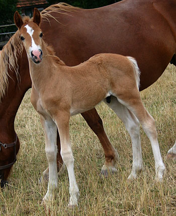 Unsere Nebo Brenin Tochter hat heute morgen ein sehr schönes Hengstfohlen mit Blesse und weißen Socken zur Welt gebracht. Es ist ein Dunkelfuchs und der Vater ist Nebo Danny, Es ist eine hervorragende Anpaarung geworden. Wir sind sehr zufrieden, Dieses ist ein reines Nebo Fohlen liniengezogen auf Nebo Brenin. verkauft nach Niedersachsen