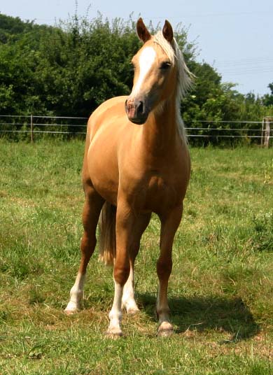 Unsere dritte Nebo Daniel Tochter hat heute morgen schönes großrahmiges Stutfohlen zur Welt gebracht. Es ist ein Goldpalomino mit bizarrer Blesse und hohen weißen Stiefeln . Der Vater ist Cwmmaddoc Apollo und es ist eine Erscheinung.