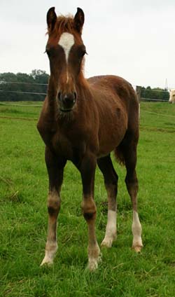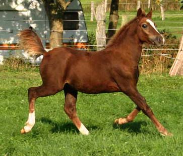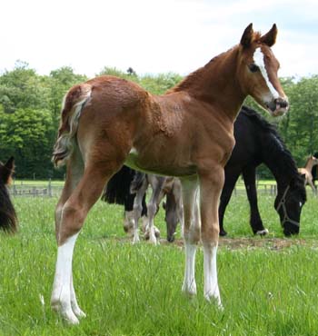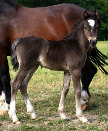Sec. D Hengstfohlen / Colt 25.05.06 Unsere Craignant Flyer Tochter hat heute morgen ein wunderschönes sehr großrahmiges und fundamentstarkes Hengstfohlen zur Welt gebracht. Es ist ein Brauner mit Blesse . Der Vater ist Trevallion Armani, ein Sohn von Brynmore Welsh Magic und steht in England. Dieses Fohlen ist sehr kompakt und für die Linienzucht später interressant.