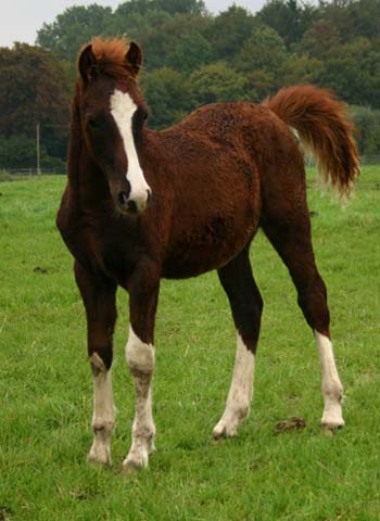 Sec. D Stutfohlen / Filly 01.05.06 Unser bunte Fronarth Confidence Tochter hat uns heute morgen ein extrem großrahmiges buntes Fuchsstutfohlen mit bizarrer Blesse und 4 weißen Socken von Tregare Lyn zur Welt gebracht. Viel Große und Fundament wie Papa und viel Farbe von Mama. Eine kleine Persönlichkeit, sehr lieb und anhänglich , wir sind sehr begeistert!!!!!!!!