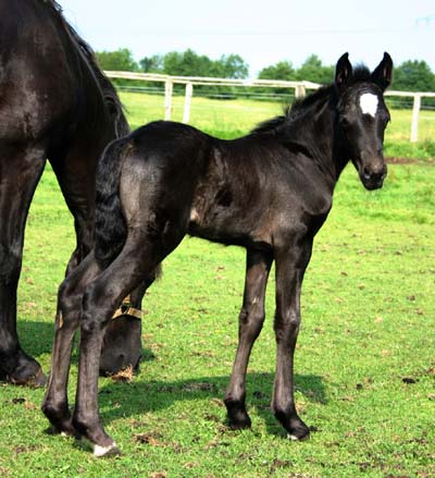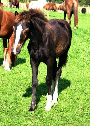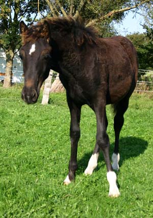 Sec. C Stutfohlen / Filly 15.05.06 Unsere an Familie Tofahrn verkaufte Sion ap Daniel Tochter hat ein sehr nettes Stutfohlen zu Welt gebracht. Es ist ein Rappe mit weißer Socke und Stern . Der Vater ist Synod King Cole und diese kleine Prinzessin ist ihm sehr ähnlich. Viel Typ und Eleganz und sehr viel Bewegung.