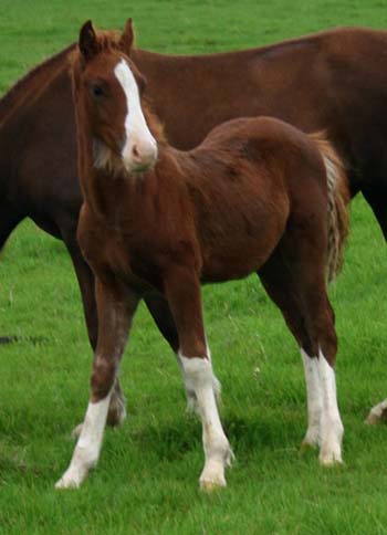 Sec. D Hengstfohlen / Colt 11.06.06 Unsere Lodor LLwynog Tochter hat heute morgen ein wunderschönes sehr großrahmiges und extrem knochenstarkes Hengstfohlen zur Welt gebracht. Es ist ein Rotfuchs mit Blesse und weißen Socken. Der Vater ist Scooby Do. Ein sehr schöner Hengsttyp mit einem kindlichen Charakter.