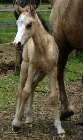 Unsere Synod Replay Enkelin hat uns sehr überrascht und uns ein wunderschönes knochenstarkes Stutfohlen zu Welt gebracht. Es ist ein Goldpalomino mit Blesse und weißen Socken. sehr gelungen und typvoll mit viel Bewegung , wie wir es von den Fohlen von D. Scooby Do gewohnt sind. verkauft nach Liebenburg/ Sold