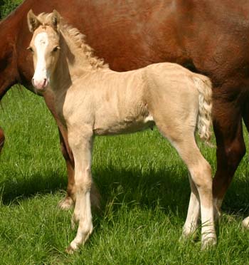 Sec. D Hengstfohlen / Colt 09.05.06 Unsere Horeb Euros Tochter hat uns nicht entäuscht. Sie hat ein wunderschönes knochenstarkes und großramiges Hengstfohlen zur Welt gebracht. Es ist ein Silbercremepalomino, 4 x weiß gestiefelt und Blesse. Ganz der Papa, es ist von Cwmmaddoc Apollo und ein Ebenbild von ihm. Eine Kopie von seiner Vollschwester Silver Rose vom Vorjahr. Ein aussergewöhnlicher Hengstanwärter für die Zukunft in toller Farbe. Er bekommt die gleiche Farbe wie Silver Rose.