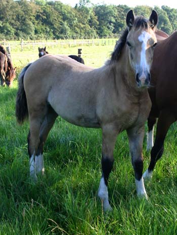 Unsere Parc Welsh Flyer Tochter hat uns heute Nacht ein schönes großrahmiges Stutfohlen zu Welt gebracht. Es ist ein Dunkelfalbe mit Stern und einem traumhaften Gesicht. Das erste Stutfohlen nach Jahren und sehr elegant und kess. Der Vater ist Dwyfor Scooby Do und diese Anpaarung ist sehr gelungen. Eine Samtfarbene Lady mit Präsenz. verkauft nach Österreich
