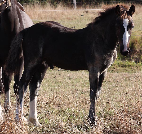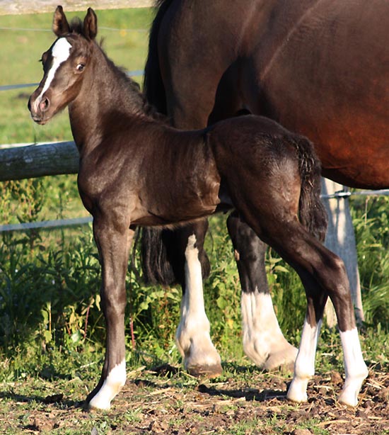Dieses Stutfohlen ist das Abschiedgeschenk unseres Darius an Arvalon, er hat die alte Little Sarah bezaubert uns so ein wunderschönes Stutfohlen in schwarz zu schenken. Die Mutter ist nun 22 Jahre. |