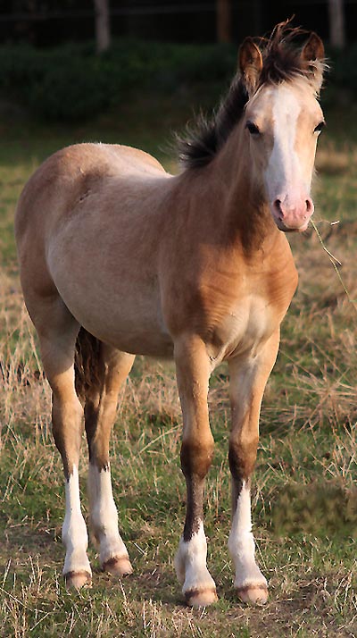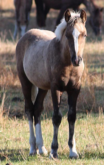 Unsere Pixie hat wieder einmal alles getoppt und mir dieses schöne Stutfohlen des alten Apollo geschenkt. Falbe mit 4 sehr hohen weißen Stiefel, einem weißen Gesicht und blauen Augen. Bunter geht nicht. Top Fundament und toller Charakter machen aus Dakota eine Zukunftsstute für Arvalon.