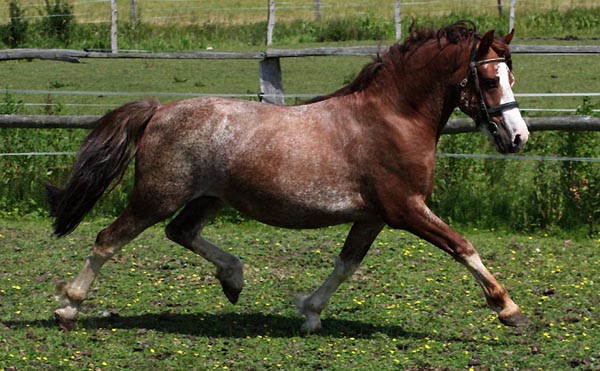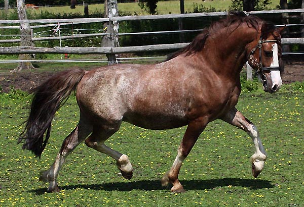 Dieser schöne und aussergewöhnlich bewegungsstarke Junghengst ist einer der letzten Söhne des mehrfachen Royal Welsh Gewinners Nebo Bouncer. Er hat sehr viel Typ und Ausdruck und hervorragendes Zuchtblut. Bouncer ist liniengezogen auf seinen Vater und sein Pedigree weist nur Royal Welsh Gewinner auf. Bestes Nebo Blut für die C Zucht . Bouncer hat einen sehr guten Charakter und ist sehr leistungsbereit. Er hat eine tolle Roanfarbe und ist sehr interessant für die Zucht. Wir verkaufen Bouncer, da wir seinen Bruder Cracker Jack in der Zucht haben. Eine tolle Gelegenheit für jemanden Spitzenblut für die Zucht zu kaufen oder einfach ein schönes Fahr / Kinderpony als Wallach.