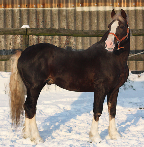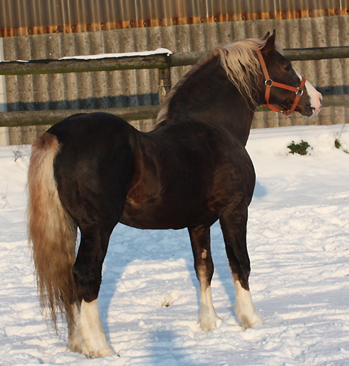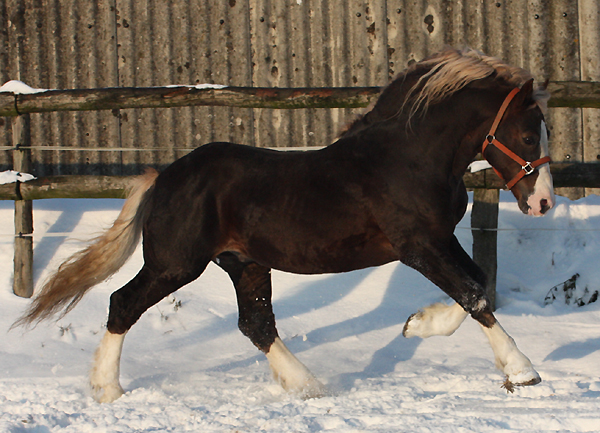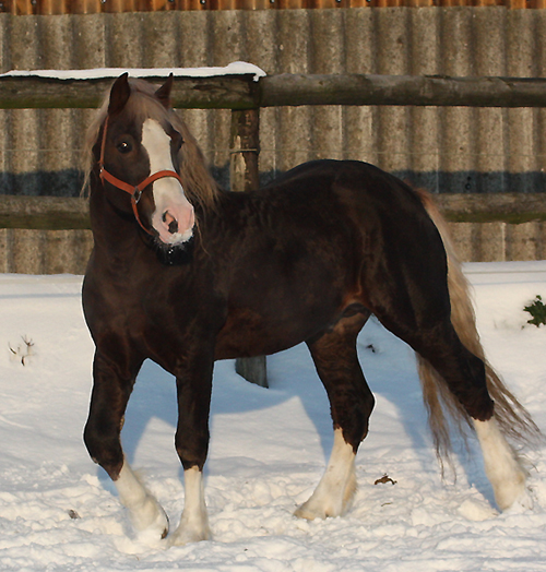 Danny vererbt einen guten Charakter, viel Fundament und Typ, sowie schöne Bewegungen mit Aktion. Durch einen Zufall habe ich diesen Hengst an der schottischen Grenze entdeckt, sein 90 jähriger Besitzer Herbert hat mit ihm auf der Farm Schafe gehütet, sowie nur die eigenen Stuten gedeckt - Danny war ein Familienmitglied.