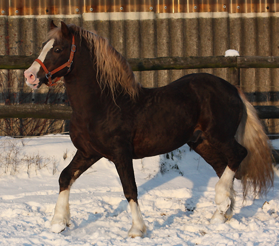 Da Herbert aus Altersgründen nun schlecht laufen kann, wollte er seinen Hengst gerne auf einem großen Gestüt sehen, um das alte Blut von Parc Welsh Flyer wieder mehr in die Zucht zu bringen. Wir haben diese Gelegenheit natürlich sofort wahrgenommen und nun steht der Hengst im Eigentum von Arvalon. Es gibt nicht mehr viele Hengste mit diesem alten Blut in der Zucht.