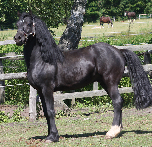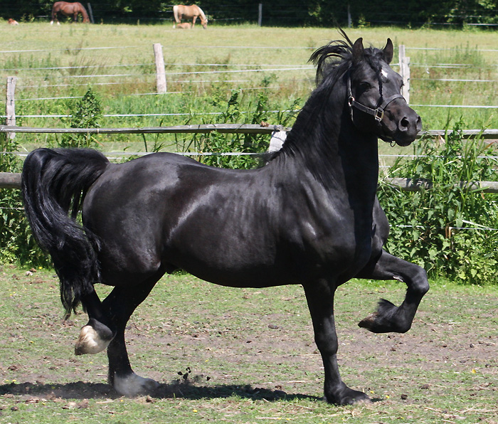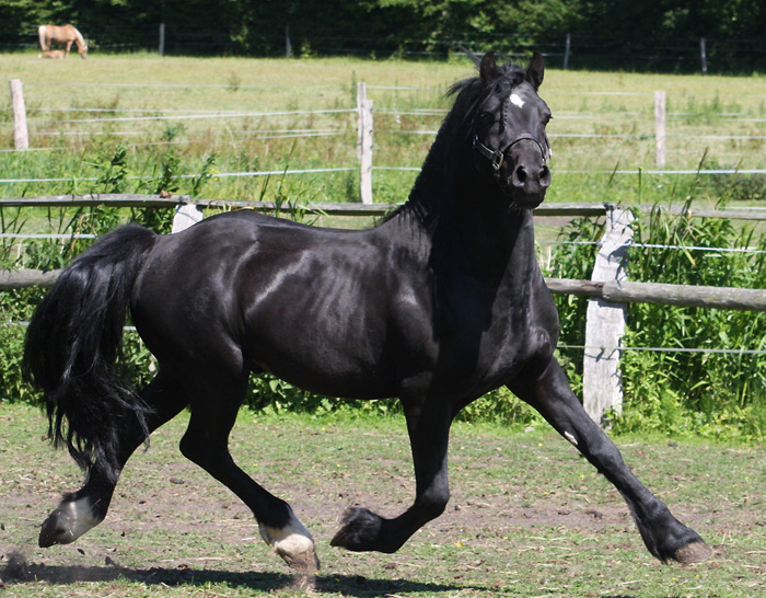 Dieser Hengst wird bei uns mit den Rappstuten laufen ,wir sind sehr gespannt. Er ist der Liebling meines Mannes, einfach verspielt und superschlau - ständig fallen ihm neue Tricks ein - einfach toll dieser Hengst. Wir freuen uns sehr.