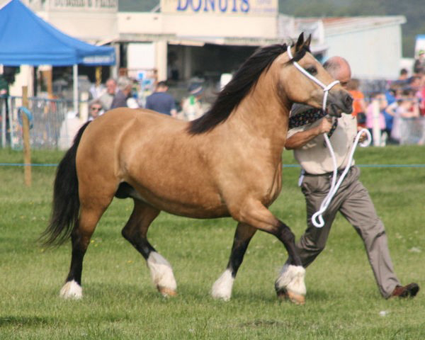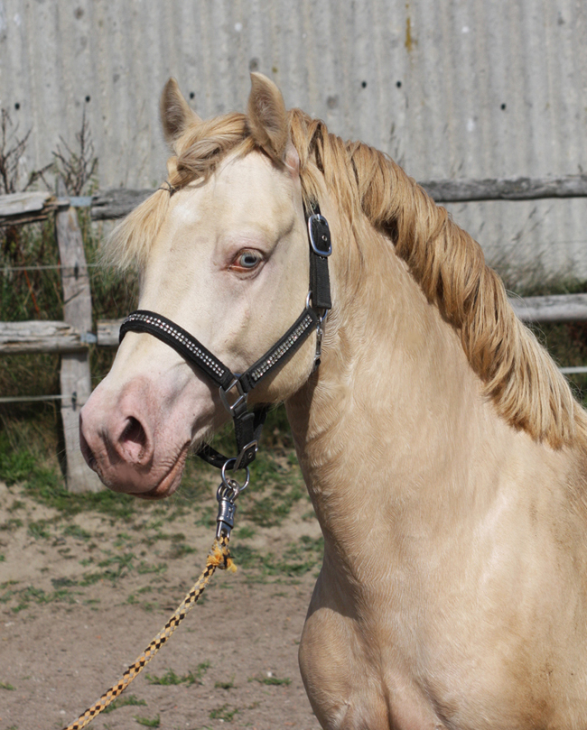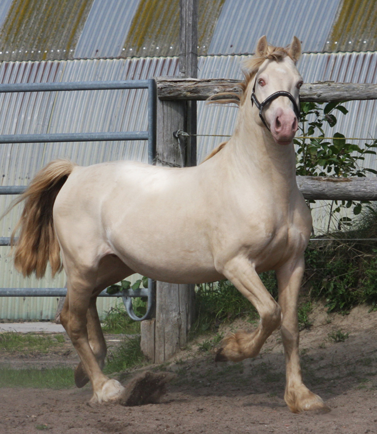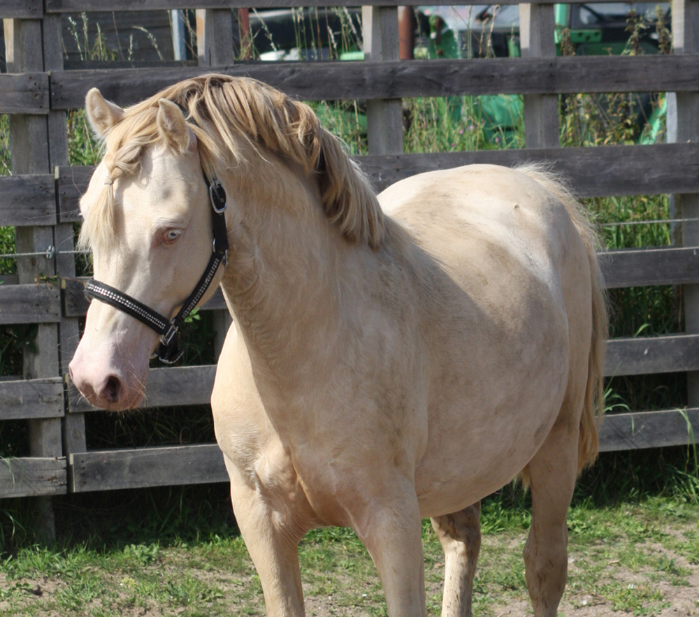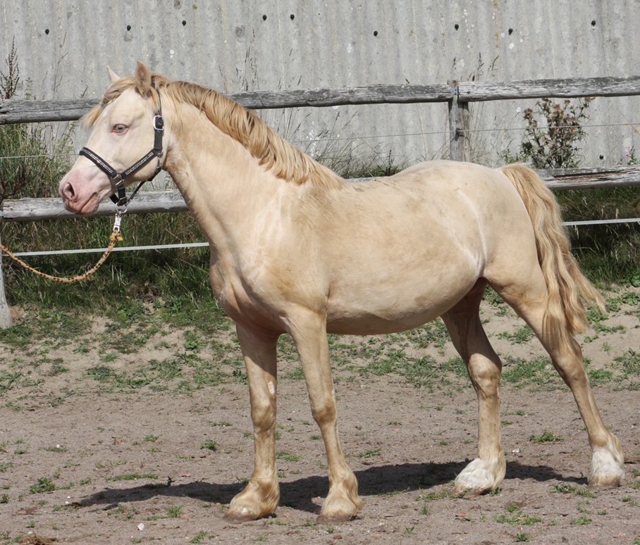 ein toller Hengst aus dem Jahrgang 2016 - ein Perlino . Diplomat wurde von uns als Jährling in Wales entdeckt und gekauft, da er ein Sohn des bekannten Penlangrug Diplomat - einem Thorneyside the Terminator Sohn - vom bekannten Brynithon Gestüt ist. Die Mutter von Diplomat ist Gwarchod Briallen - eine Enkeltochter unserer alten Stammstute Llansantffraed Little Sarah v. Fronarth Llewelyn. Also die Mutter Falbe - der Vater Falbe - wie ich das las konnte das Fohlen nur ein perlino sein. Und es war einer. Ich sah Diplomat als Fohlen und dann als Jährling konnte ich ihn kaufen. Diese Mischung von altem Cardi Blut mit Terminator Blut ist eine gute Mischung. Das fertige Ergebnis hat Fundament , Ponytyp und viel Go gepaart mit einem sehr umgänglichen freundlichen Charakter. Also perfekt für unsere Zucht . Dippy hatte im letzten Jahr die ersten Fohlen für uns - fast alles Falben. Er hat sich gut vererbt - also lagen wir nicht so schlecht als wir uns für diesen Hengst in so jungen Jahren entschieden haben.