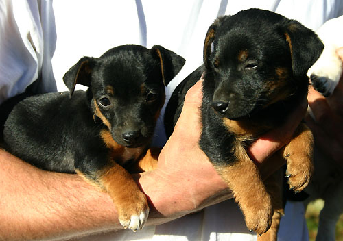unsere Welpen aus September 2007 - 2 Rüden sind noch da - einmal viel schwarz und einmal mit weißem Latz und Pfoten