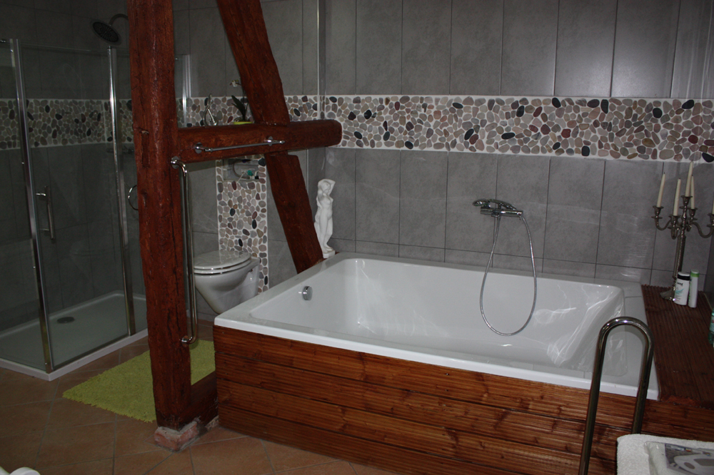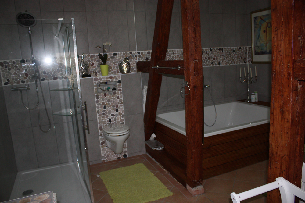 | Grosses Vollbad im Gestütshaus mit XXL Dusche mit XXL Poolwanne |