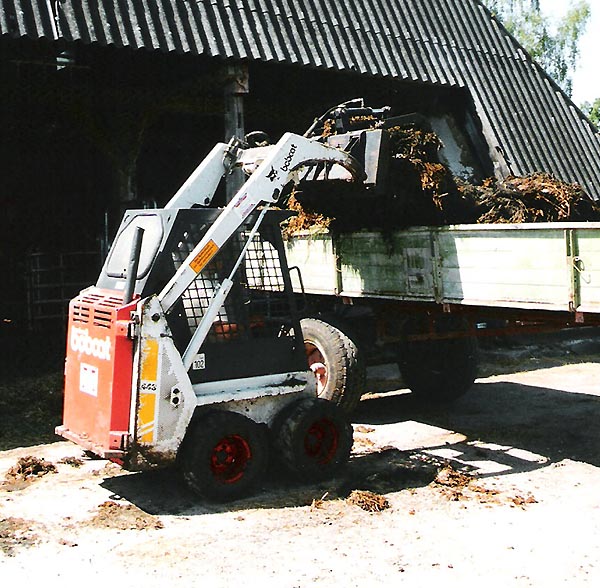 | Unser Hoflader , die Kehrmaschiene und der Bobcat - sie machen die Mistarbeit auf dem Betrieb um vieles leichter - gerade in alten Gebäuden |