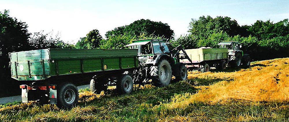 | Wir machen selber Rundballen in Stroh oder Heu - wir machen über 1000 Ballen Heu im Jahr und 500 Rundballen Stroh - zusätzlich noch Quaderballen |