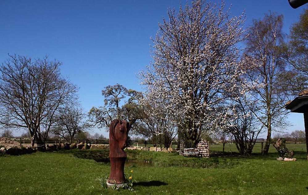 | der Kirschbaum blüht ebenfalls - sowie einige unserer Skulpturen im Garten - wir mögen das |