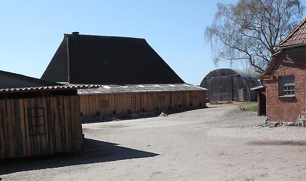 | Die alte Scheune mit Laufstalltrakt und Fohlenstallanbau |
