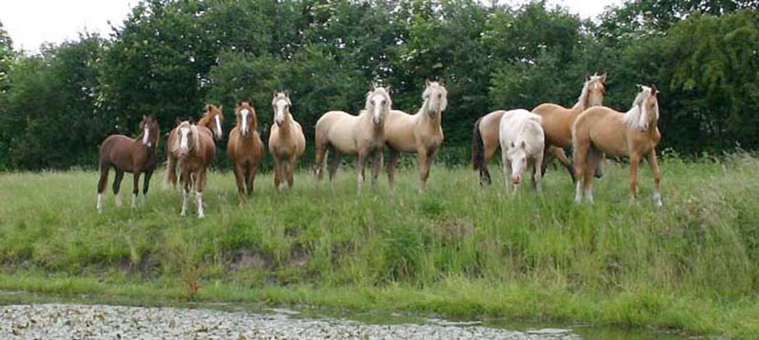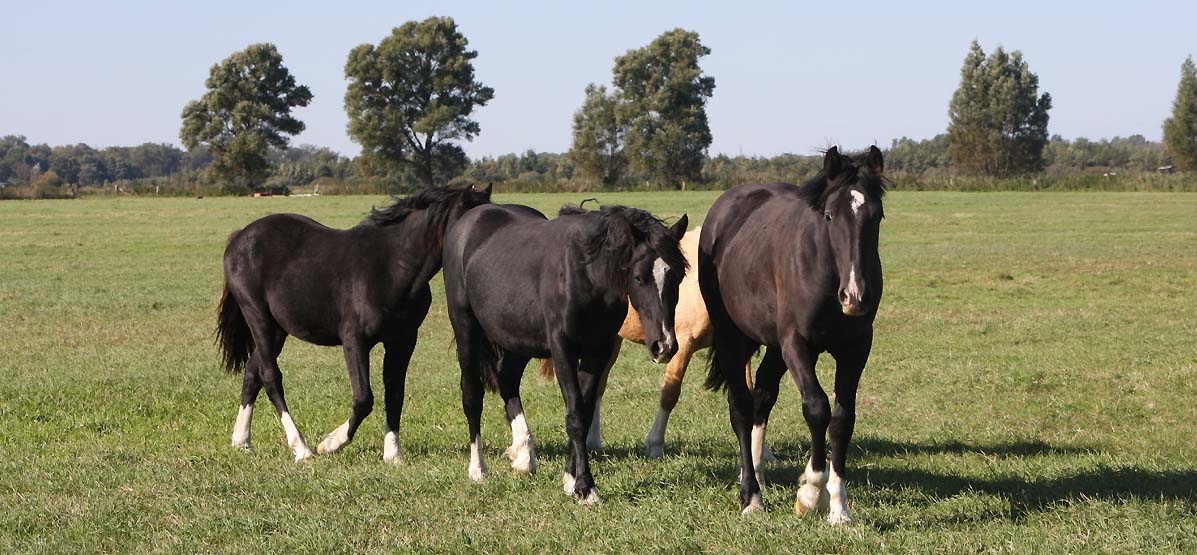 | Die Weide der Junghengste bis 1 Jahr - die bunte Truppe ohne Rappen |