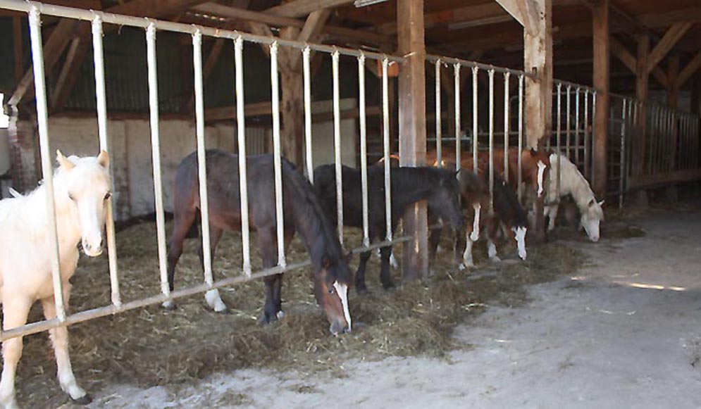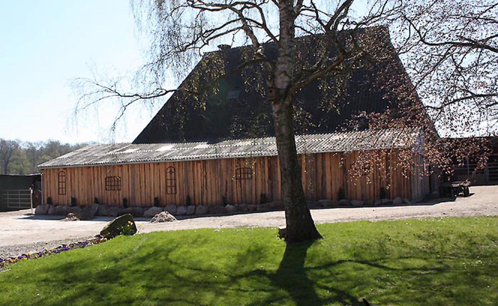 | Die alte Scheune mit neuem Stallanbau - 16 Einzelboxen wurden neu eingebaut. |