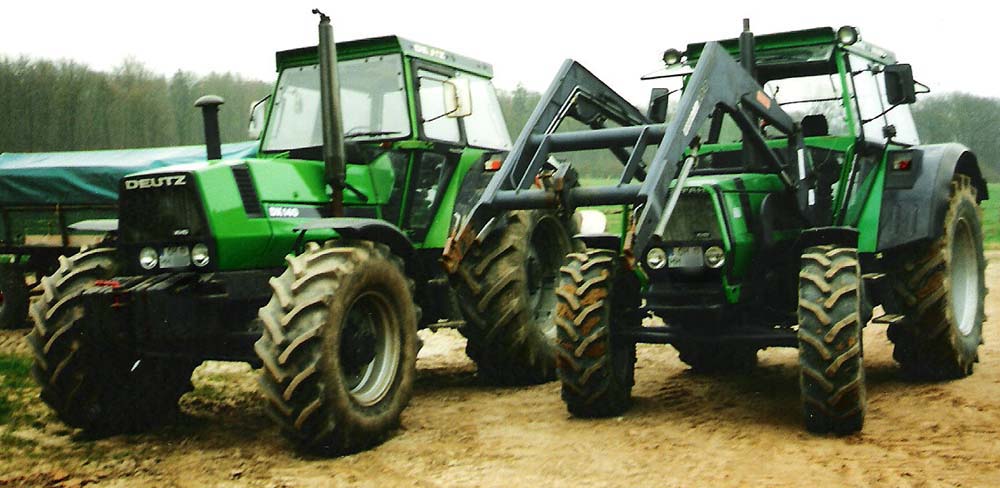 | Unsere Arbeitsmaschinen - das Lieblingsspielzeug meines Mannes - wir verfügen über 5 Schlepper von 50 - 140 PS - Diese 3 mit Allrad |
