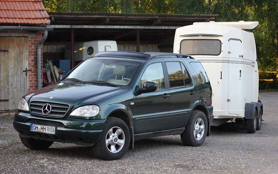 | Die Chefin ist unterwegs - der grüne Allrad Merci ist ihr Markenzeichen - Hengste zum Training - Hobby der Chefin! |