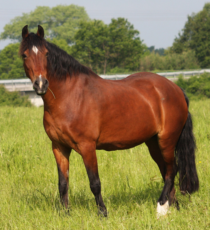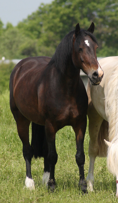 Vater: Nebo Daniel v. Nebo Brenin Mutter: Trefaes Bracelet v. Cathedine Danny Boy Dieser sehr typvolle Cobhengst ist einer der letzten Söhne von Nebo Daniel und ein kleines Replica. Er hat seine Farbe, seine Ausstrahlung und seine Bewegung. Er war schon sehr erfolgreich auf vielen Schauen in England und Wales und hat Goldmedallien bekommen. Ebenfalls gehörte er zu den Toppreis Hengsten der Royal Welsh Sale. Durch das Studium seiner Besitzerin im Ausland stand der Hengst zum Verkauf, Nicola hatte viele Angebote für diesen Hengst, da er gut geritten ist und auf der Royal Welsh in Sattelklassen starten sollte, doch ich konnte sie überzeugen, daß dieses besondere Zuchtblut nicht in "under Saddle" Klassen verschwendet werden darf. Sie hat nach einigen Verhandlungen eingesehen, daß ein Deckhengst in Deutschland auch ein schönes Leben haben kann - nun steht er im Eigentum von Arvalon und wir sind total begeistert von Daniel. Danke nochmals an Niki und auch an Alan, der sich ordentlich ins Zeug gelegt hat für uns.