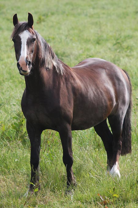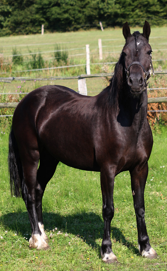 | Fronarth Ceredig Vater: Fronarth Dafydd Ddu Mutter: Synod Rosary v. Brynymor Welsh Magic Auch diese schwarze Perle haben wir aufgrund seiner herausragenden Blutlinie gekauft. Ceredig stammt aus der Topstute des Fronarth Gestütes und sein Vater Dafydd Ddu war teuerster Hengst der Welsh Cob Sale. Ceredig wird bei uns in die Zucht gehen und das wertvolle Blut des Stempelhengstes Brynymor Welsh Magic einbringen. Wir sind ebenfalls sehr froh, das Ceredig nun zu unserem wertvollen Hengstbestand gehört, wie seine beiden Halbschwestern.