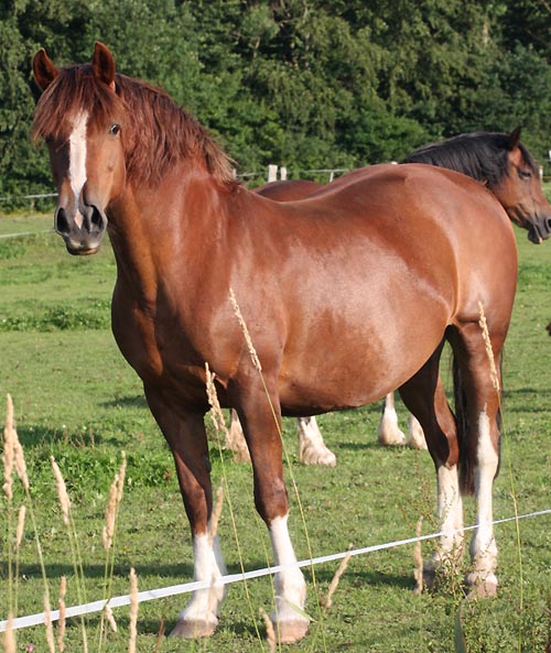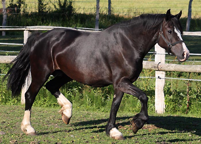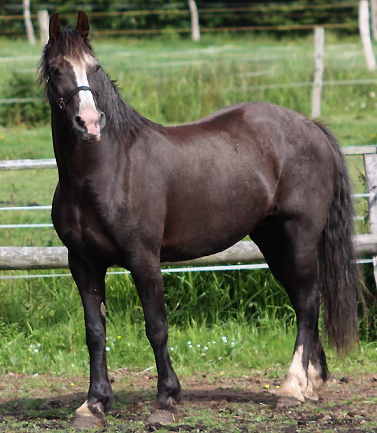 | Ynysgerwyn Sparkling Black Princess Vater: Thorneyside the Jackpot v. Thorneyside Flyer Mutter: Tirclyn Sparkler v. Nebo Daniel Diese Stute hat einen traumhaften Typ und ebenfalls viel von ihrem Großvater - T. Flyer . Wahnsinniges Gangwerk und enormes Kaliber. Diese Stute hat einen Traumtyp . Ein toller Cardigan Cob - wir konnten nicht widerstehen diese Stute für unsere Zucht zu kaufen.