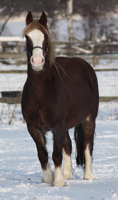 | Trefaes Eirine Vater: Trefaes Brenin Du v. Cyttir Telynor Mutter: Trefaes Evening Star v. Cathedine Danny Boy Diese Stute kam auf sehr ungewöhnliche Weise zu uns, wir haben sie gekauft da sie eine sehr typvolle Tochter unseres Stammhengstes Brenin Du ist. Eirine hatte schon ein tolles Fohlen auf Arvalon und wir sind sehr gespannt auf ihr nächstes. Einfach eine Traumstute die auf jeden Fall bei uns bleiben wird.
