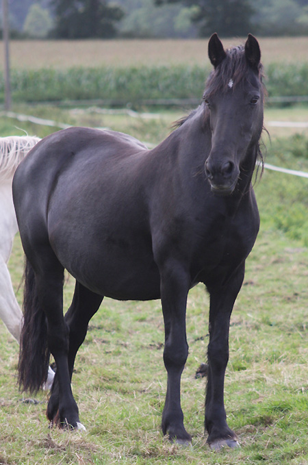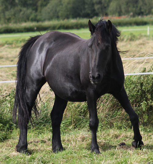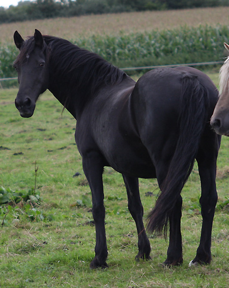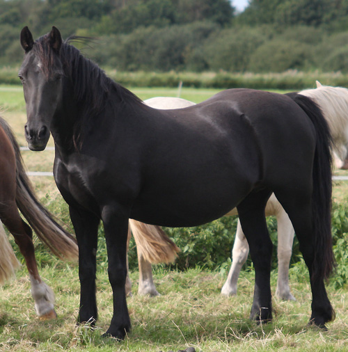 Black Beauty ist eine echte Tochter von Ebbw Victor, der mehrfach die Royal Welsh gewonnen hat. Die Mutter ist eine Nebo Black Magic Tochter. Ich habe diese Stute in Wales gesehen und es war Liebe auf den ersten Blick. Diese wunderschöne Cobstute wird mit ihrem Rahmen, Fundament und den tollen lackschwarzen Blutlinen der Royal Welsh Sieger wird viel Typ und Fundament in unsere Zucht bringen. Stuten dieses alten Kalibers mit enormem Fundament werden sehr selten in der Zucht. Die Stute hatte im letzten Jahr ein tolles Stutfohlen bei uns.
