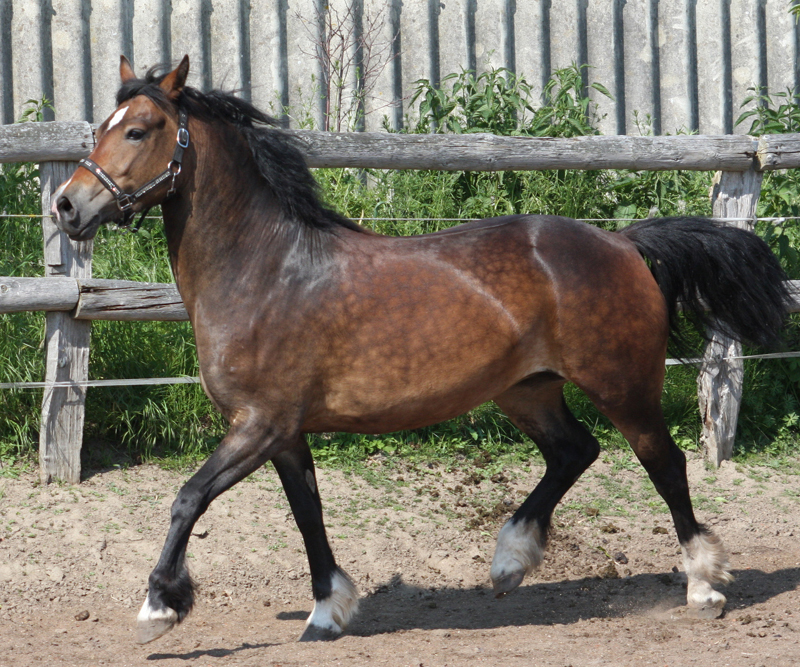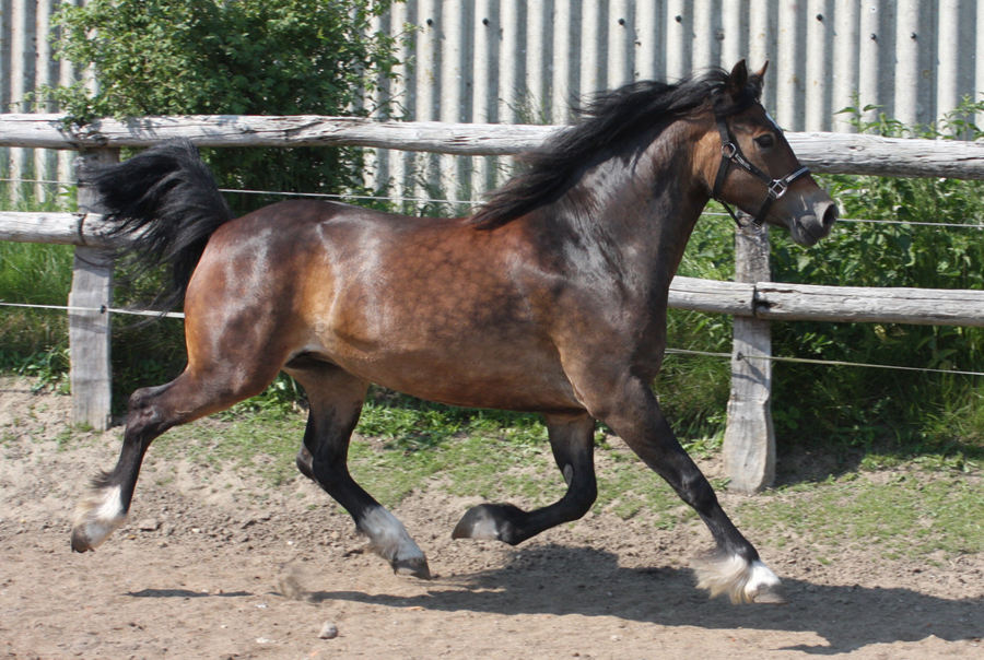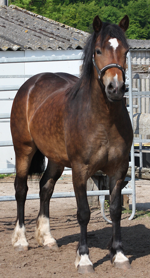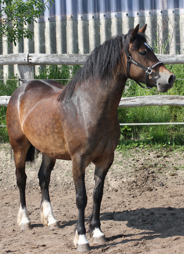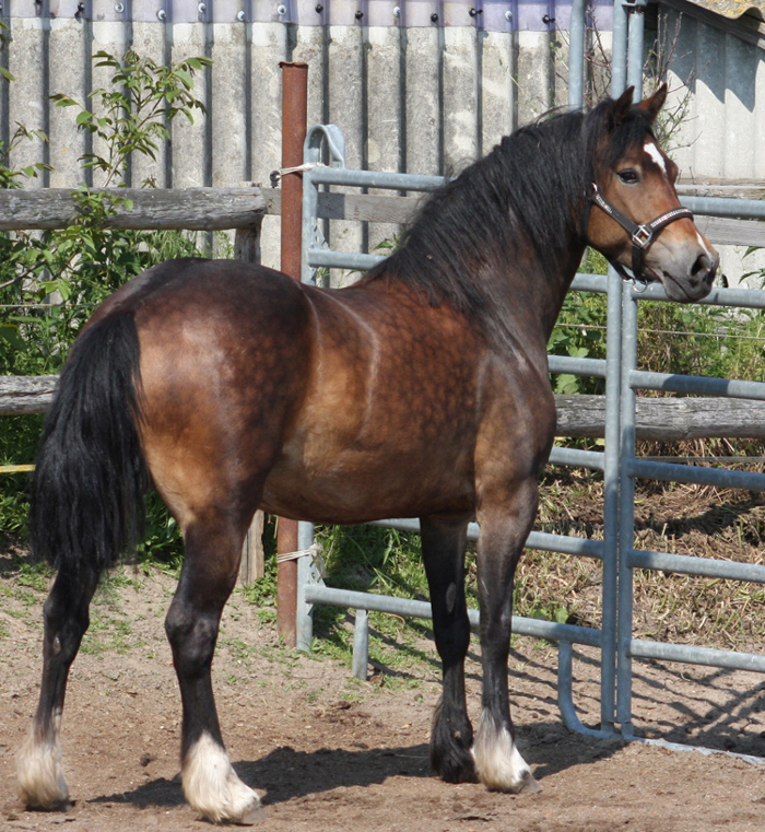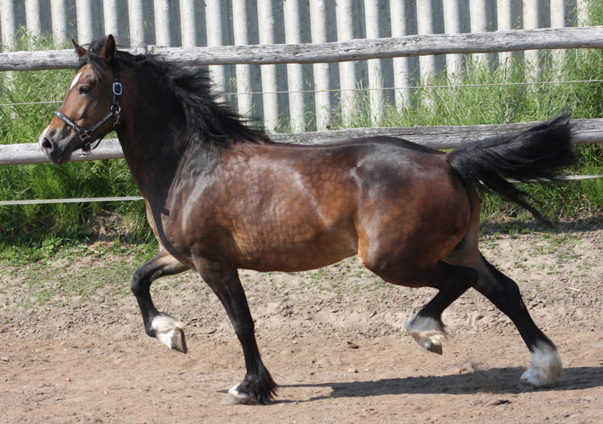 Sie ist zu einer kalibrigen fundamentstarken Stute im alten Typ herangewachsen und steht voll für den alten Cardi Typ. Trotzdem hat sie tolle Bewegungen und ist vom Charakter wie ein Arbeitscob - einfach lieb und immer freundlich- willig.