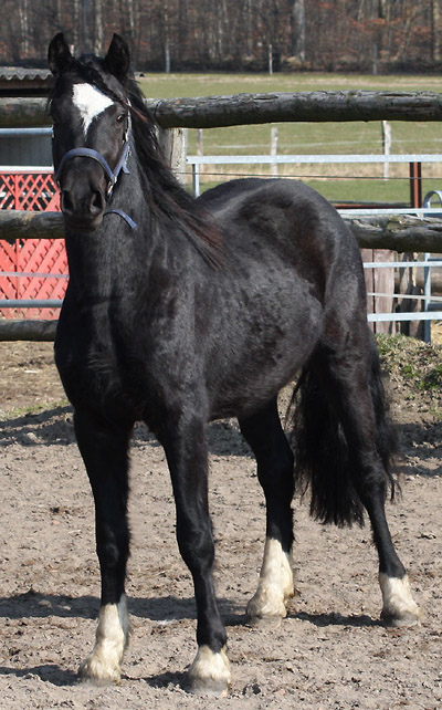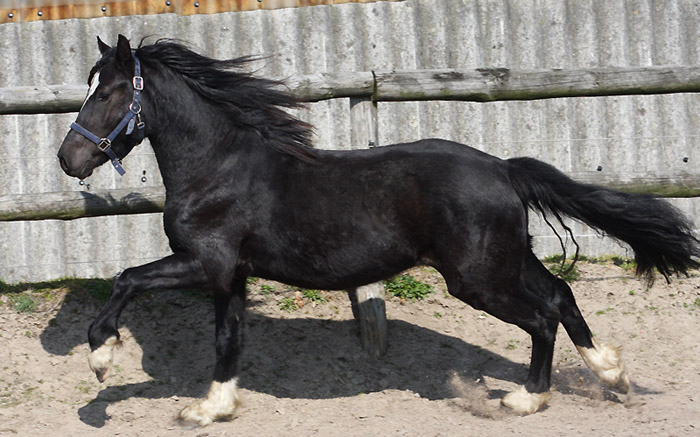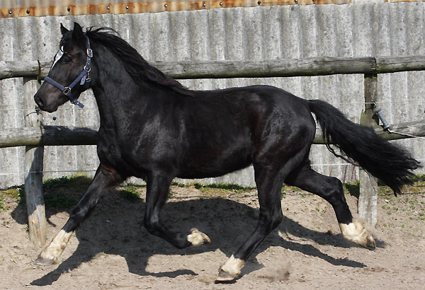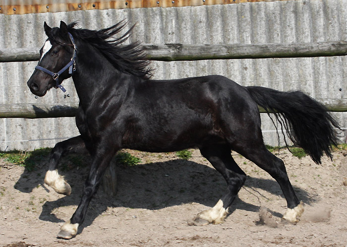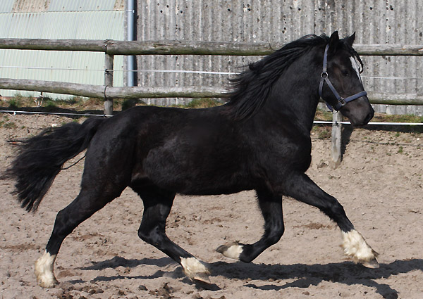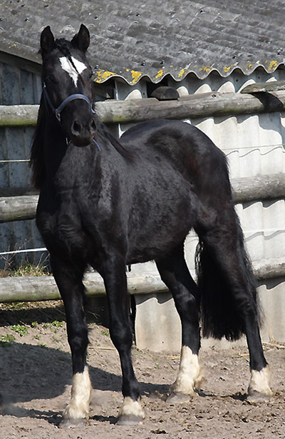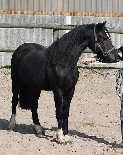 Michelangelo ist ein wunderschöner Junghengst und ein kleines Replika seins Vater Bronfoel Harri - einem Ebbw Victor Sohn . Seine Mutter ist eine der letzten Töchter des Tyngwndwn Black Magic, welcher sehr jung verstarb. Dieser schöne Junghengst im alten Typ mit purem Rappblut hat eine traumhafte Bewegung und wir ca . 1,50 groß. Er glänzt in seiner schwarzen Jacke genau wie Papa und hat nahezu perfekte Abzeichen. Er trägt das älteste Blut der Zucht mit 5 Sterne Blutlinien - seine Eltern sind schon sehr alt jetzt. Wir verkaufen Michelangelo nur, da wir einen großen Teil an jungen Importhengsten für die Zucht haben. Pures Nebo Black Magic Blut in toller Optik - super für Dressur oder Sport geeignet. Noch nicht ausgebildet - ein roher Edelstein. 4.500,- Euro.