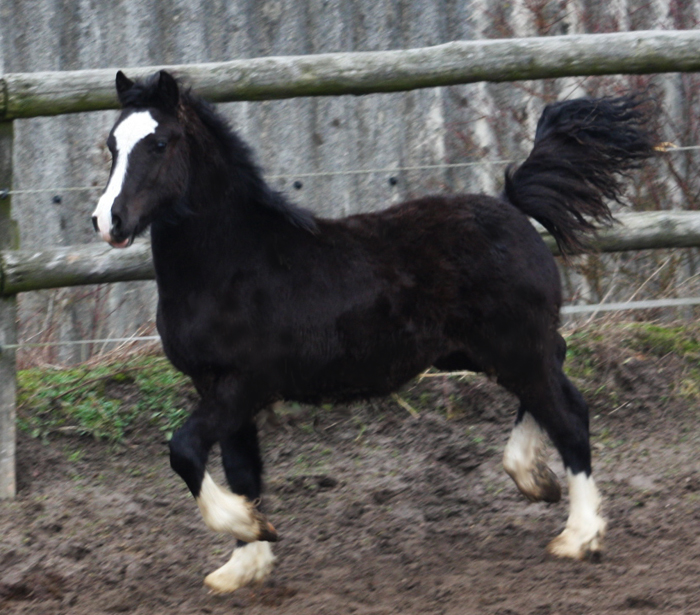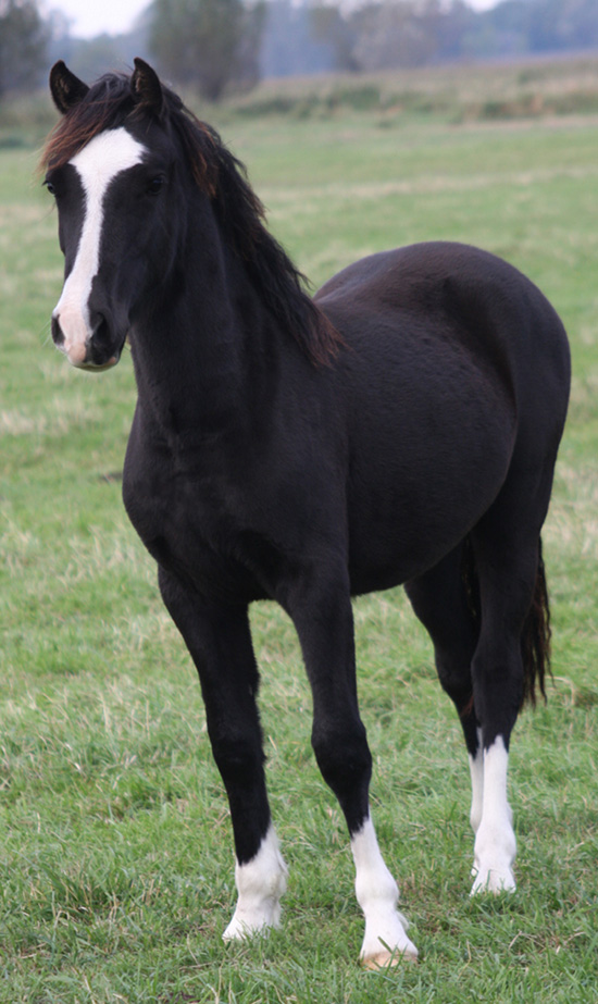 Dieser schicke Junghengst hat traumhafte Bewegungen , sehr elastisch mit viel Schub. Rappe mit perfekten 4 weissen Stiefeln und viel Ponytpy - ein toller Sohn des Welsh Magic. Er läuft zur Zeit in der Junghengstherde. Henry wird im Maß für den Ponysport bleiben und ist für alle Sparten geeignet.