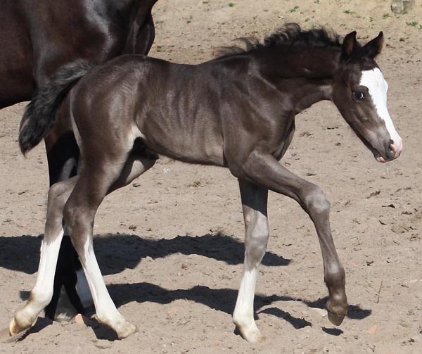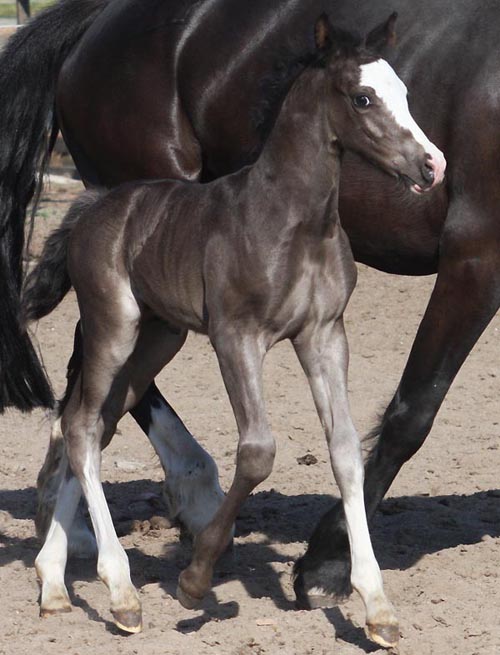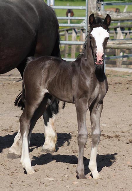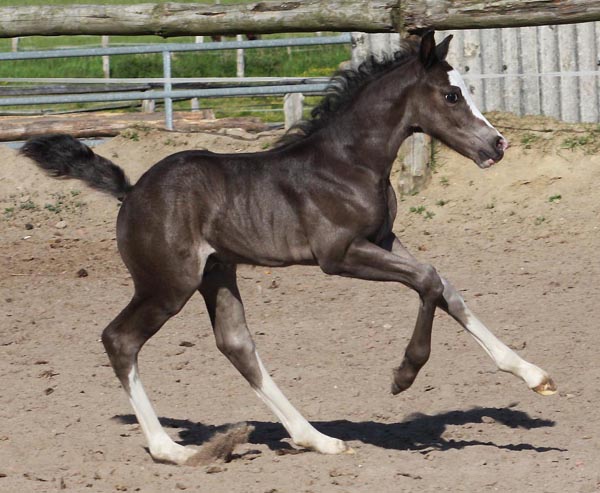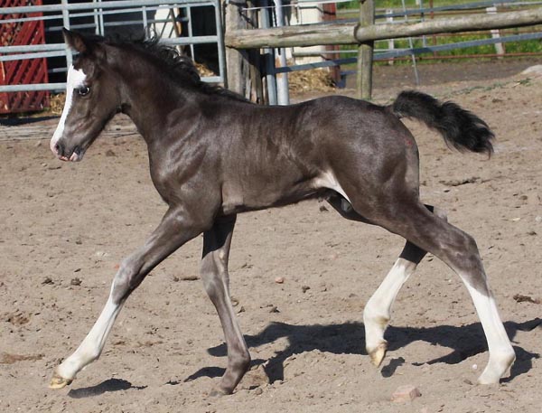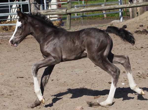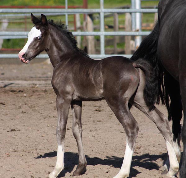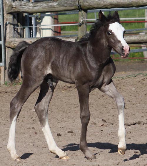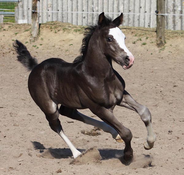 Hallo, ich wollte mich hier kurz vorstellen, mein Name ist Arvalon Romanov und ich bin erst einige Tage alt - meine Mama ist Nebo Blodwen und hat schon als Fohlen die Royal Welsh gewonnen. Mein Papa ist Bronfoel Harri - der ist schon imposant und gehört hier zu den besten Hengsten sagt man - Er macht schon mächtig Eindruck auf mich.