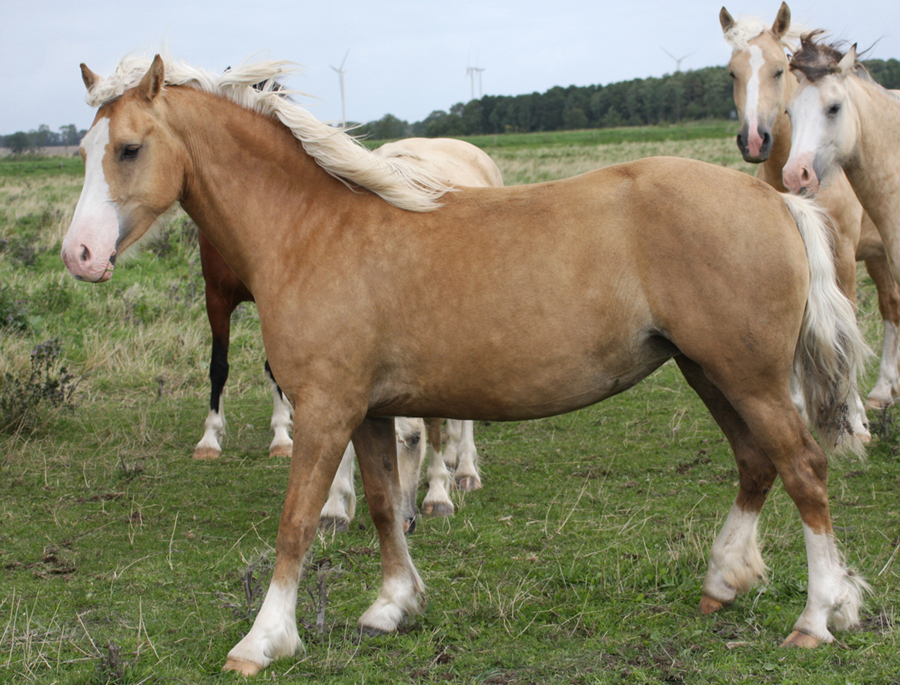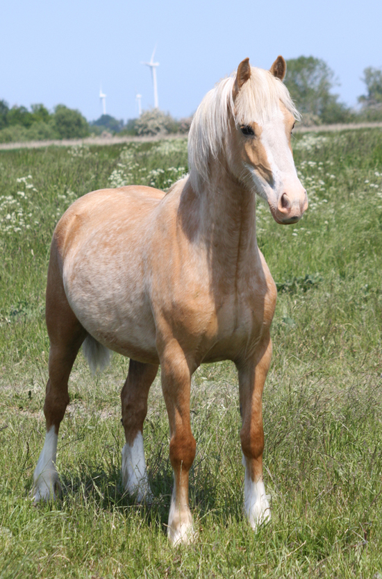 Goldpalomino - Stute 2019 geboren - eine tolle Stute im alten Cardi Typ - mit viel Kaliber und Präsenz. Sie ist eine Tochter des AC Cream Boy/ Thorneyside Cream Boy - und ihre Mutter ist Brynithon Primrose - eine besondere Tochter des Thorneyside the Terminator. Also reines Thorneyside Blut vom Feinsten und dann noch in Sonderlackierung Gold.