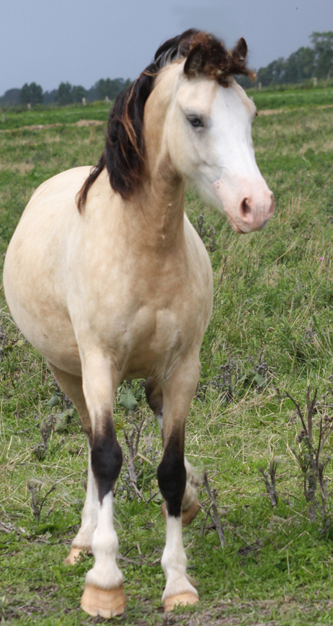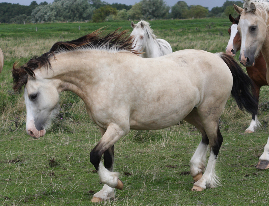 Lady ist eine absolute Ausnahmestute - sie kommt aus den besten Linien - ihre Mutter Chiltern First Lady kommt aus Nebo Prince Linien mit viel Farbe und wunderschönen Gesichtern. Wir haben bisher erst einmal ein Stutfohlen aus dieser Stute verkauft - das erste bei uns weil es ein Partbred und Schecke war . Alle anderen Stut- und Hengstsfohlen sind bisher bei uns geblieben. Lady ist natürlich auch eine Tochter unseres cremello Deckhengstes AC Cream Boy v. Thorneyside Cream Boy - daher hat sie das Silbergen - ihre Mähne und Schweif ist bunt mit Silberhaar - ebenfalls schimmert der ganze Körper silber im Falbfell. Eine wunderschöne Farbe.