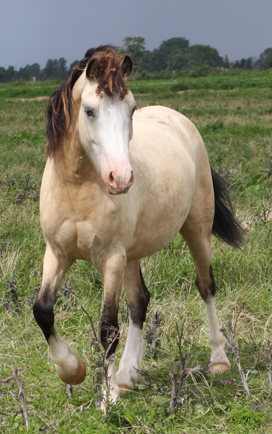 Silberfalbe 4 x weiß - Stute 2019 geboren - eine Vollschwester unserer jungen Deckhengstes Arvalon Golden Picasso, welcher dieses Jahr das erste Mal bei uns mit Stuten gelaufen ist.