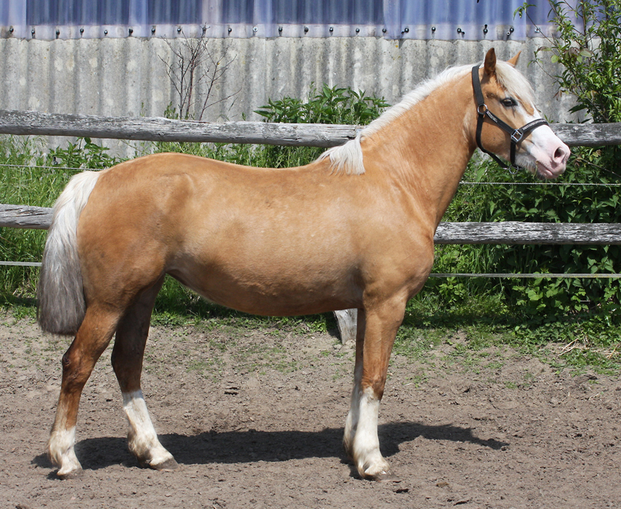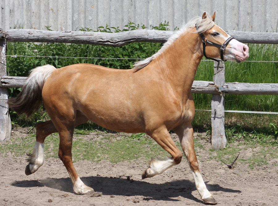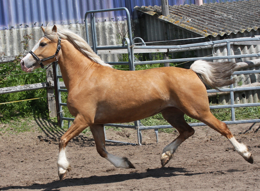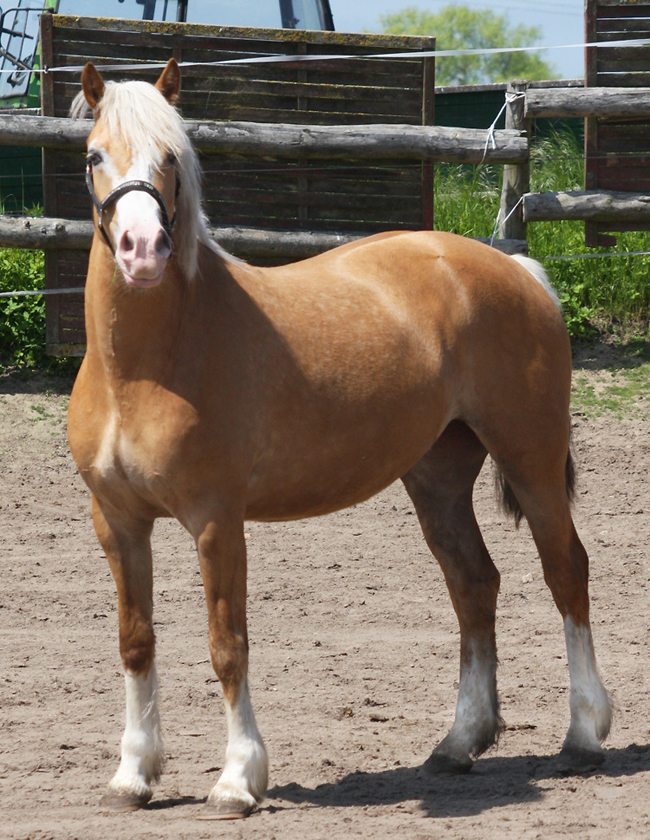 Sie hat eine tolle Abstammung - ihr Vater ist der Cremello Hengst AC Cream Boy / Thorneyside Cream Boy mit Silbergen - und ihre Mutter gehört zu den Besten Stuten des Gestütes - Fronarth Dameg aus der Synod Rosary - Brynymor Welsh Magic. Eine Traumabstammung - es ist auch zu sehen.
