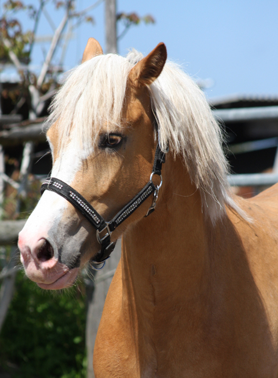 Goldpalomino 4 x weiß - bizzarre Blesse - 2017 geboren - mit viel Kaliber und altem Typ. Maserati war schon als Fohlen eine Schönheit und hat eine unverkennbare Blesse - sie flitzte wie ein Maserati über die Weide und umkreiste voller Lebensfreude ihre Mutter - siehe Fohlenfotos. Das gab ihr den Namen - wir wollten diese Königin unbedingt in unsere Zucht nehmen.