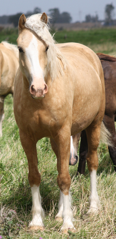 Goldpalomino 4 x weiß - Stute 2019 geboren. Medina ist ebenfalls eine sehr besondere Stute - sie ist eine Tochter unserer alten Rhosygarreg Ledi Mai v. Crugybar Mabon Mai - dem Stempelhengst der Zucht - er war einer der Besten . Fohlen dieser Stute gibt es nur bei uns , in England oder in Dänemark - da aus England importiert. Ledi Mai ist eine Top Stute von Mabon . Medina ist ebenfalls eine Tochter unseres cremello Hengstes AC Cream Boy v. Thorneyside Cream Boy und wir finden, diese Anpaarung ist sehr gelungen!