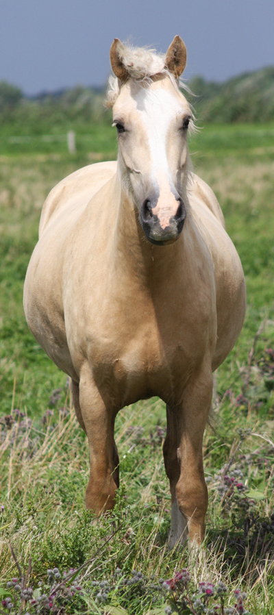 Rose ist eine Schönheit in ihrer goldenen palomino Farbe mit perfekten Abzeichen - da passt einfach alles! Wir verkaufen diese Stute wegen den letzten 2 Fohlenjahrgängen, welche tolle Stutfohlen für die Aufzucht gebracht hat - daher müssen wir uns von einigen sehr guten Jungstuten trennen um etwas Platz zu machen. Die Gelegenheit für einen Züchter dieses Blut zu bekommen - es gibt nicht viel Trevallion Blut in Deutschland. Die Stute ist für jede Art von Sport oder Freizeit super geeignet.