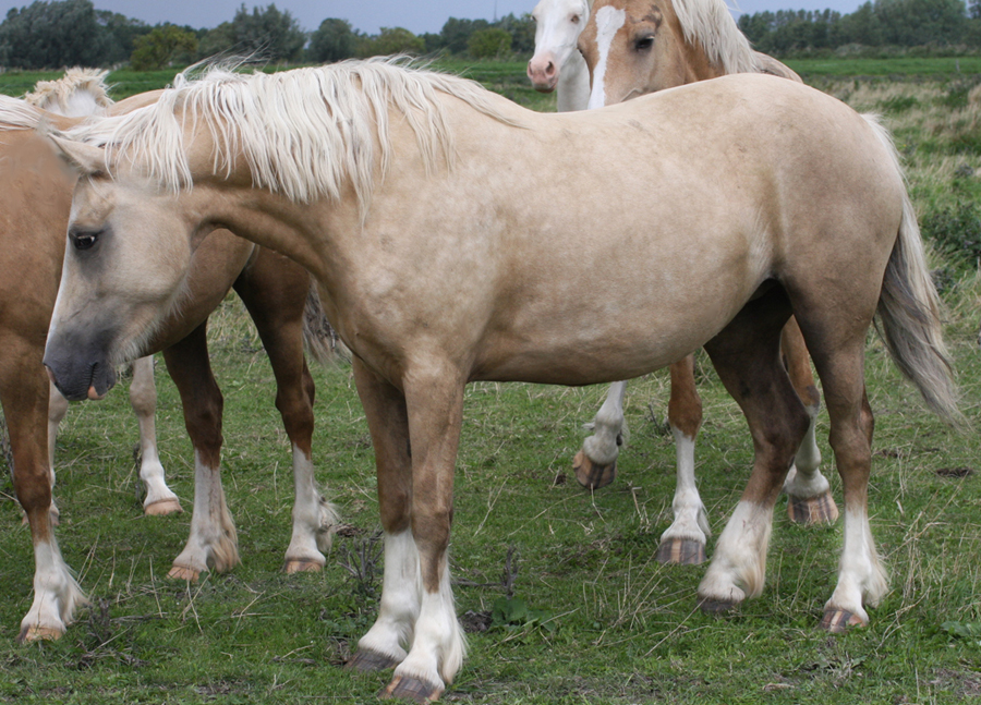 Goldpalomino 4 x weiß - Stute 2019 geboren - Rose ist eine wunderschöne Jungstute mit besten Trevallion/ Thorneyside Linien. Sie ist eine Tochter unseres cremello Hengstes AC Cream Boy / Thorneyside Cream Boy und ihre Mutter Kallistalodge Tamara ist eine Tochter des Trevallion Jumping Jack Flash x Trevallion Hooch. Also 5 Sterne Blut für diese Stute - es ist nicht zu übersehen.