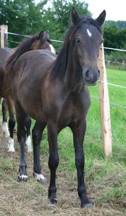 Sec. D Stutfohlen, Rappe m. Stern und weißen Socken. Ein sehr großes knochenstarkes Stutfohlen von Finneyhill Black Henry aus der Llansantfraed Little Sarah v. Fronarth Llewelyn.