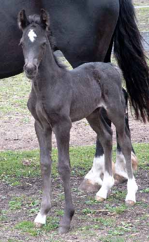 Sec. D Hengstfohlen, Rappe, Stern m. 3 weißen Socken aus der Soendergard Melody von Finneyhill Black Henry. Ein sehr großrahmiges bewegungsstarkes Fohlen. Ein Ebenbild von Papa Einen Tag alt.