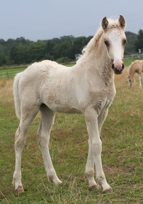 Welsh Cob Stutfohlen 17.05.2011 Cremello 4 x weiß, Blesse, blaue Augen Vater: Dwyfor Scooby Do Mutter: Arvalon Marigold v. Cwmmaddoc Apollo