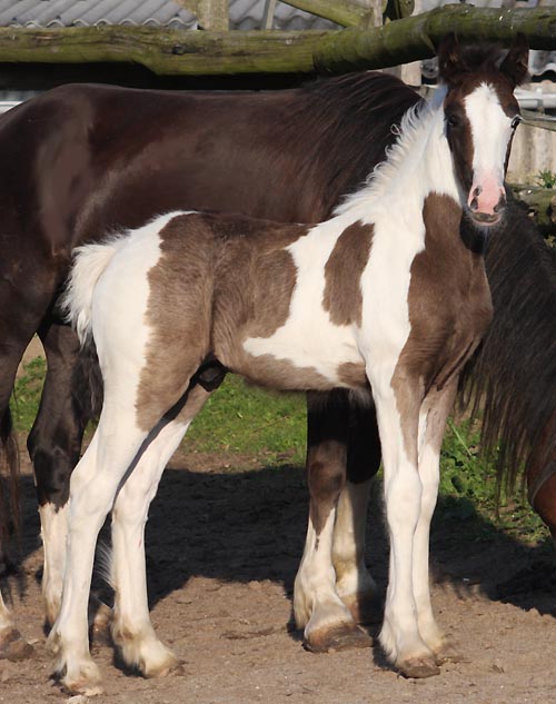 sehr schickes Stutfohlen mit viel Fundament und Rahmen. Sehr typvoll mit perfekten Abzeichen und enorme Bewegungen. Aus sehr alten Blutlinien und perfekt für die Farbzucht. Den Charakter hat es natürlich von Papa, was wollen wir mehr. Aber super neugierig vom ersten Moment an - toller Charakter. eigene Nachzucht |