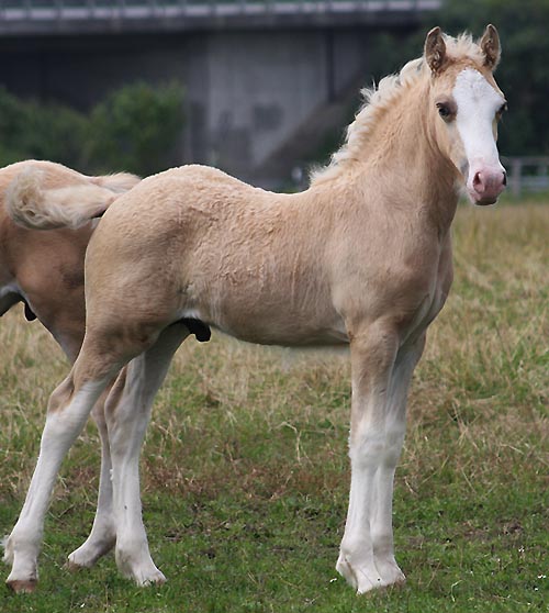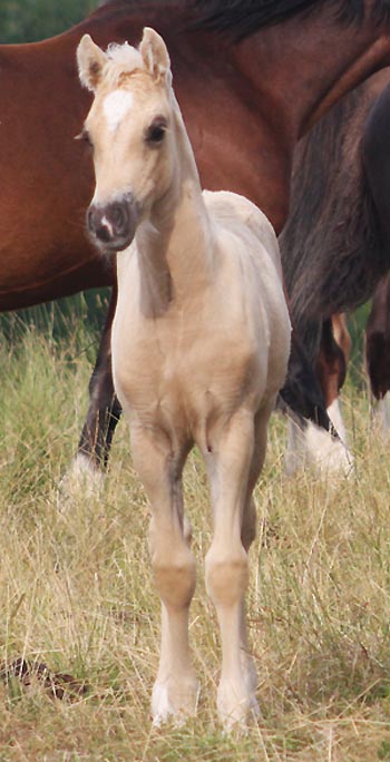 Welsh Cob Hengstfohlen 07.06.2011 Goldpalomino, weiße Socken, Stern Vater: Arvalon Creme de Cassis Mutter: Brimstone Nesta
