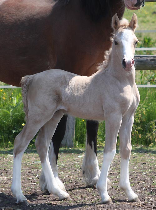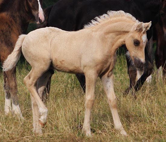 Welsh Cob Hengstfohlen 12.06.2011 Palomino , 4 hohe weiße Stiefel, Blesse Vater: Arvalon Assassin v. C. Apollo x Horeb Euros Mutter: Carregcoch La Belle v. Horeb Euros